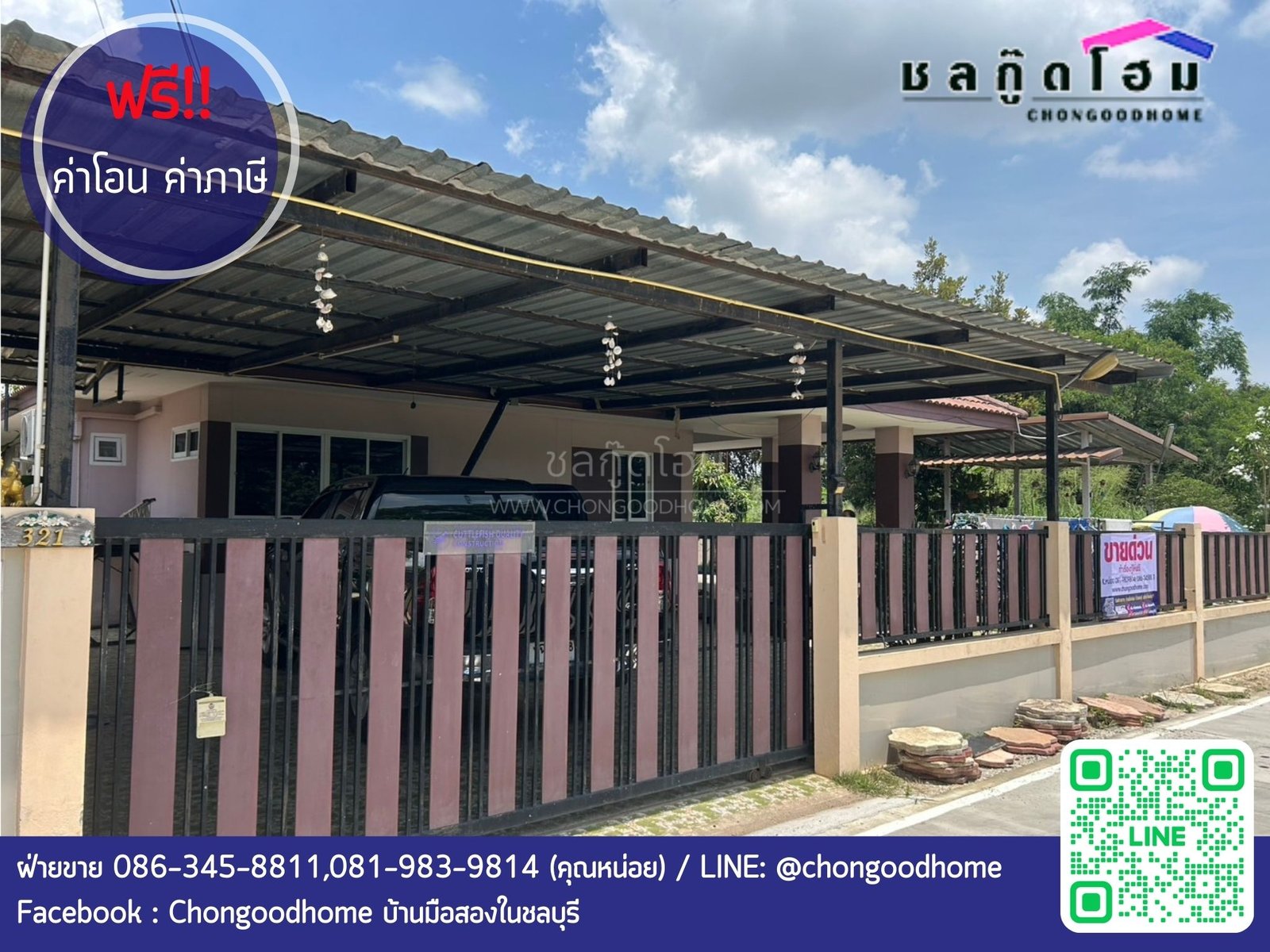 บ้านเดี่ยวชั้นเดียวหนองซาก วัดหนองเขิน เนื้อที่ 94 ตร.วา
