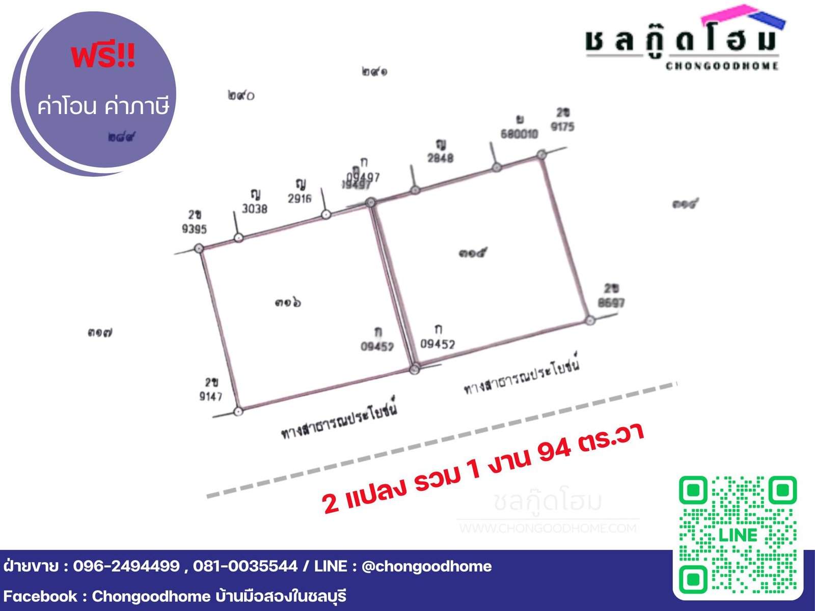 - ที่ดินเปล่าบางแสน เนื้อที่ 1 งาน 94 ตร.วา