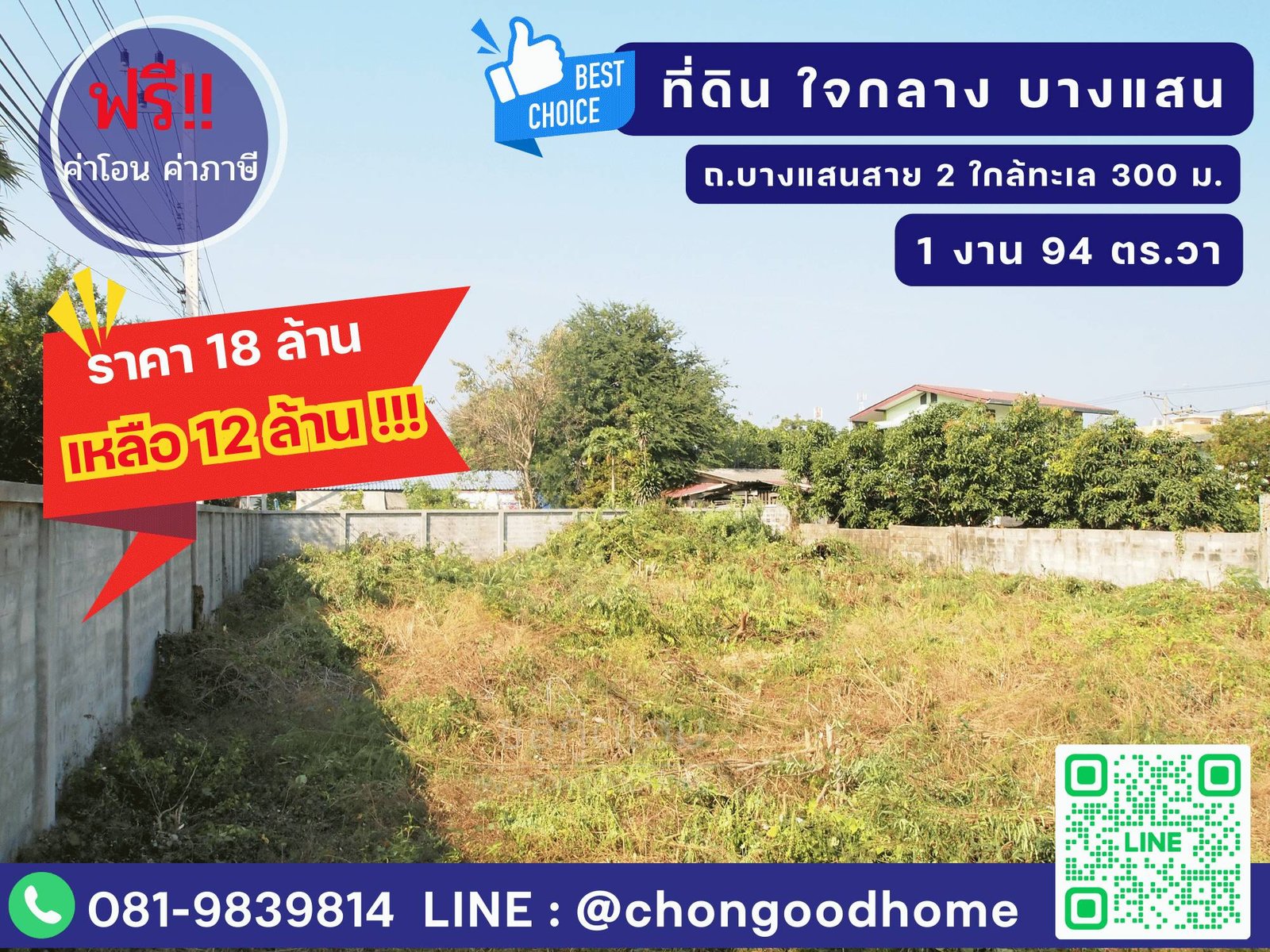 ที่ดินเปล่า(บางแสน) ซ.6 เนื้อที่ 1 งาน 94 ตร.วา